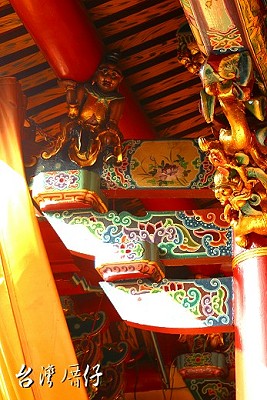 。 3.以前台灣中南部的主要居民以平埔族為多,漢人常以「番仔」來稱呼他們,而這些「番仔」力大無窮,適合用來做為負重的力士,所以匠師把其做成塑像放在牆頭上,以支撐沈重的屋角,也有放於樑架上,做扛樑狀者稱「力士扛樑」。